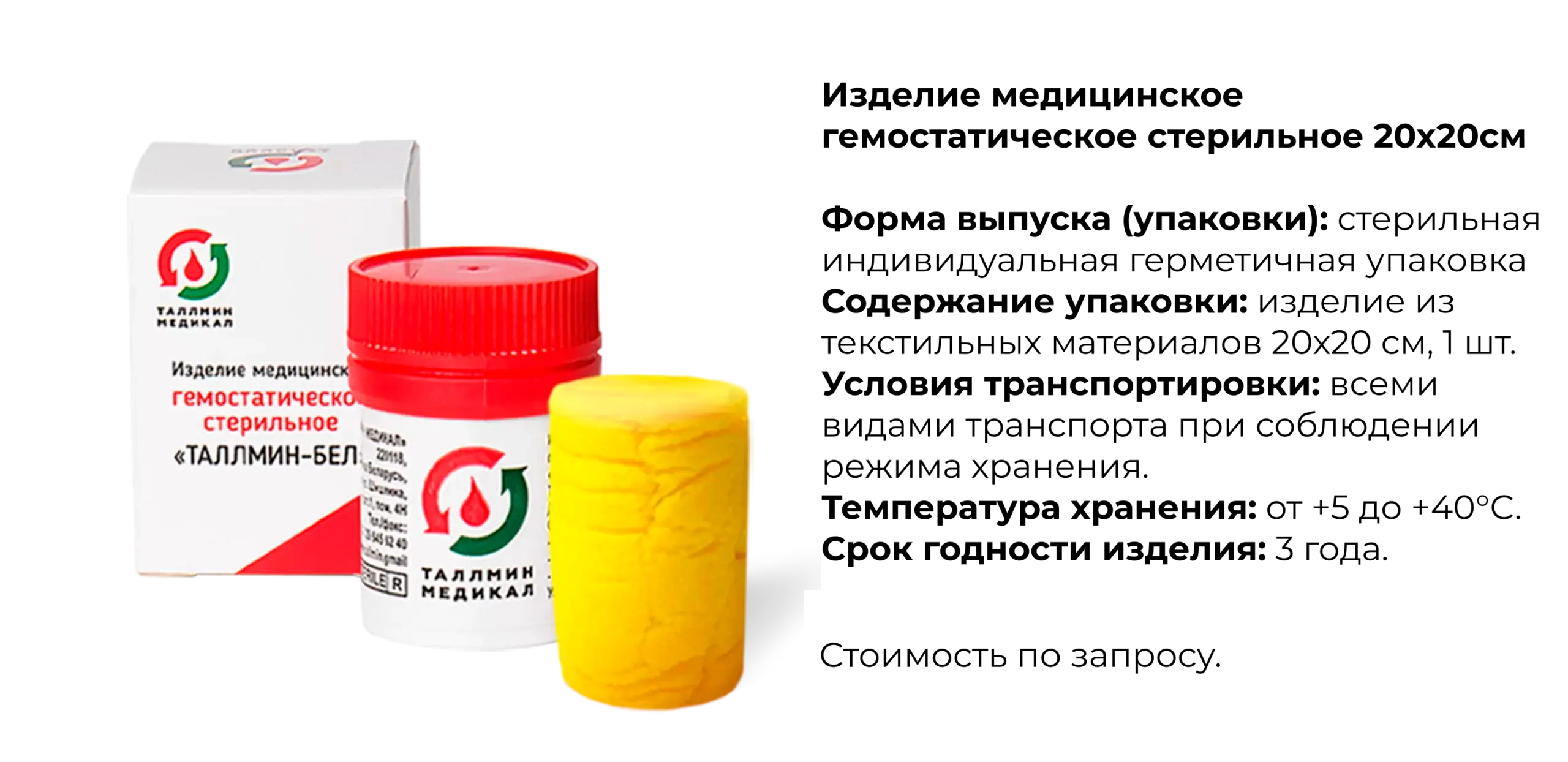 «ТАЛЛМИН-БЕЛ» – это уникальный белорусский гемостатик, который останавливает кровотечение независимо от текучести крови и состояния пациента.